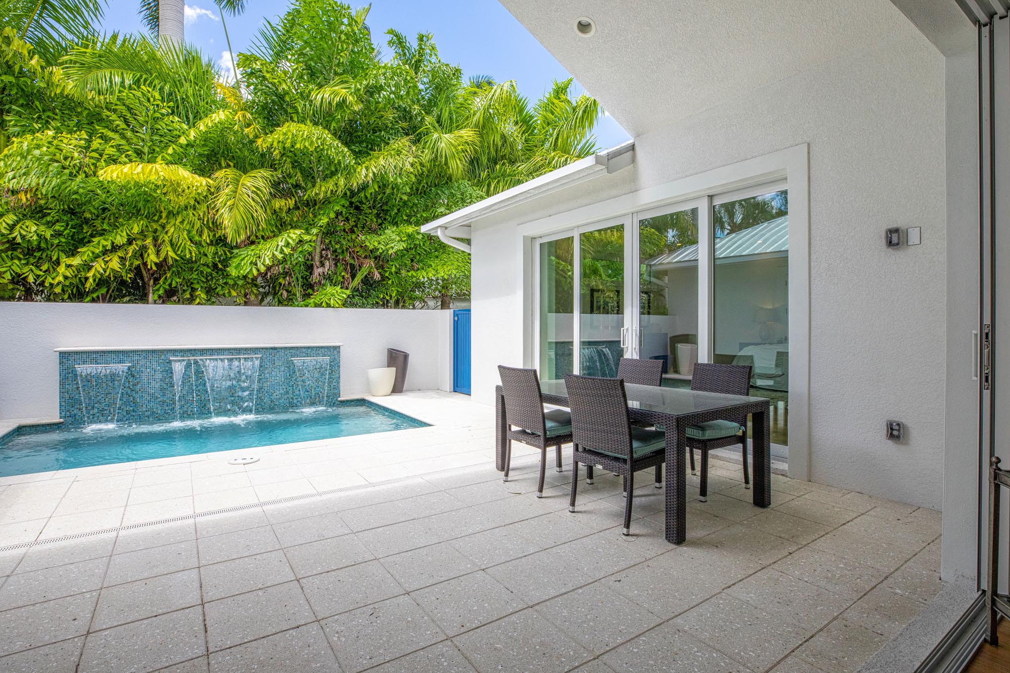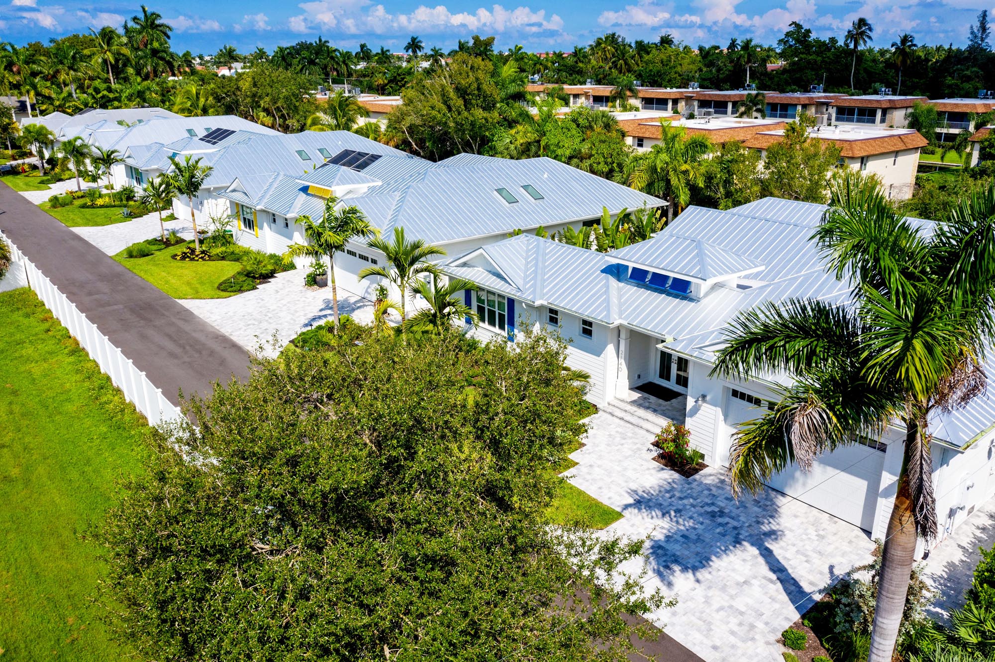 Sonrise recently completed its Kona Kove project, a unique enclave of five courtyard-pool homes that combine the exterior styling of old Florida with today’s contemporary interiors and conveniences. The 3-bedroom, 3-bath, 2,400 SF homes (3,400 SF under roof) feature the high-end finishes expected by discerning buyers along with membership privileges to the Naples Bay Club only a short walk away. Other features split bedrooms with a private guest suite, LED lighted pool waterfall, and many more.