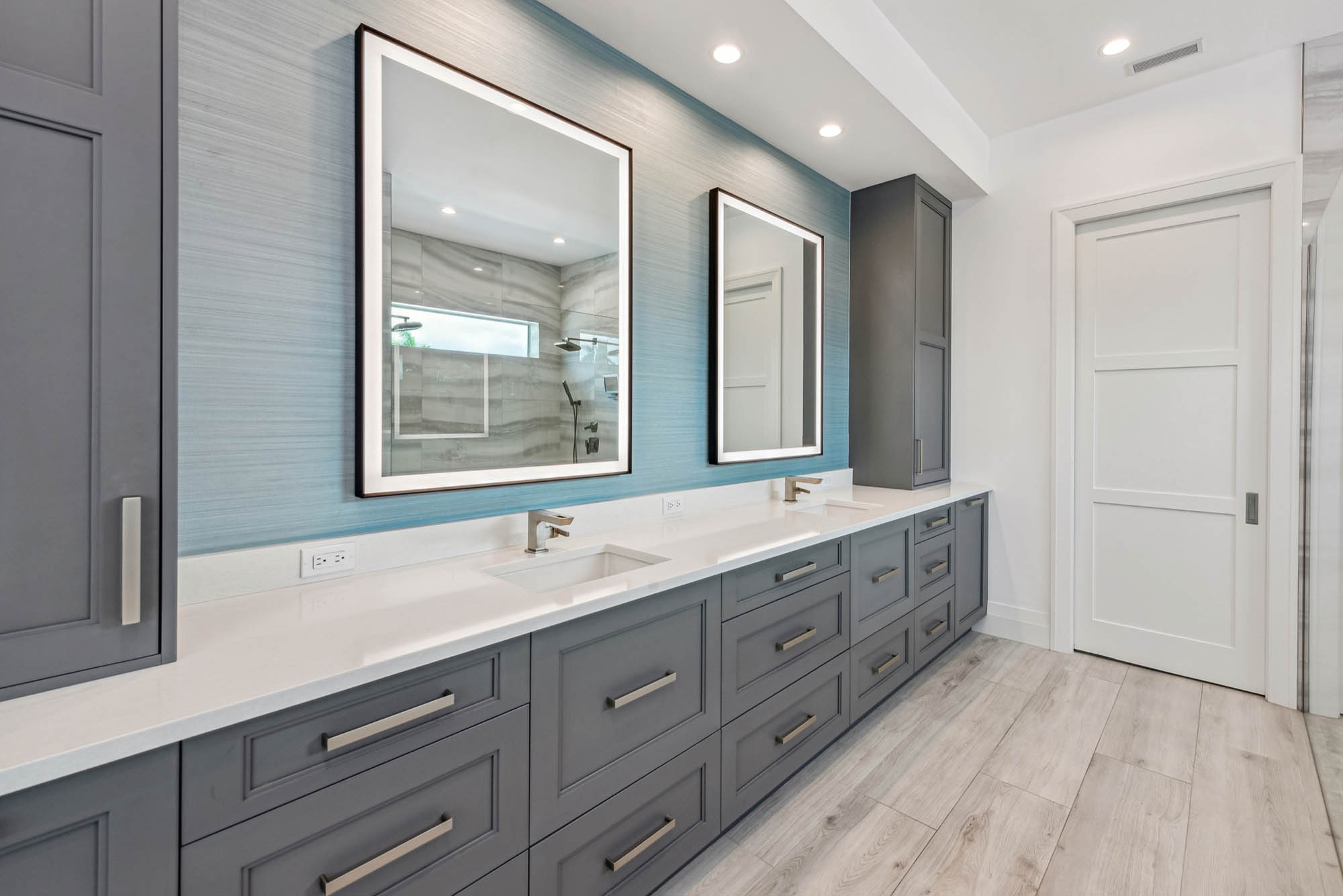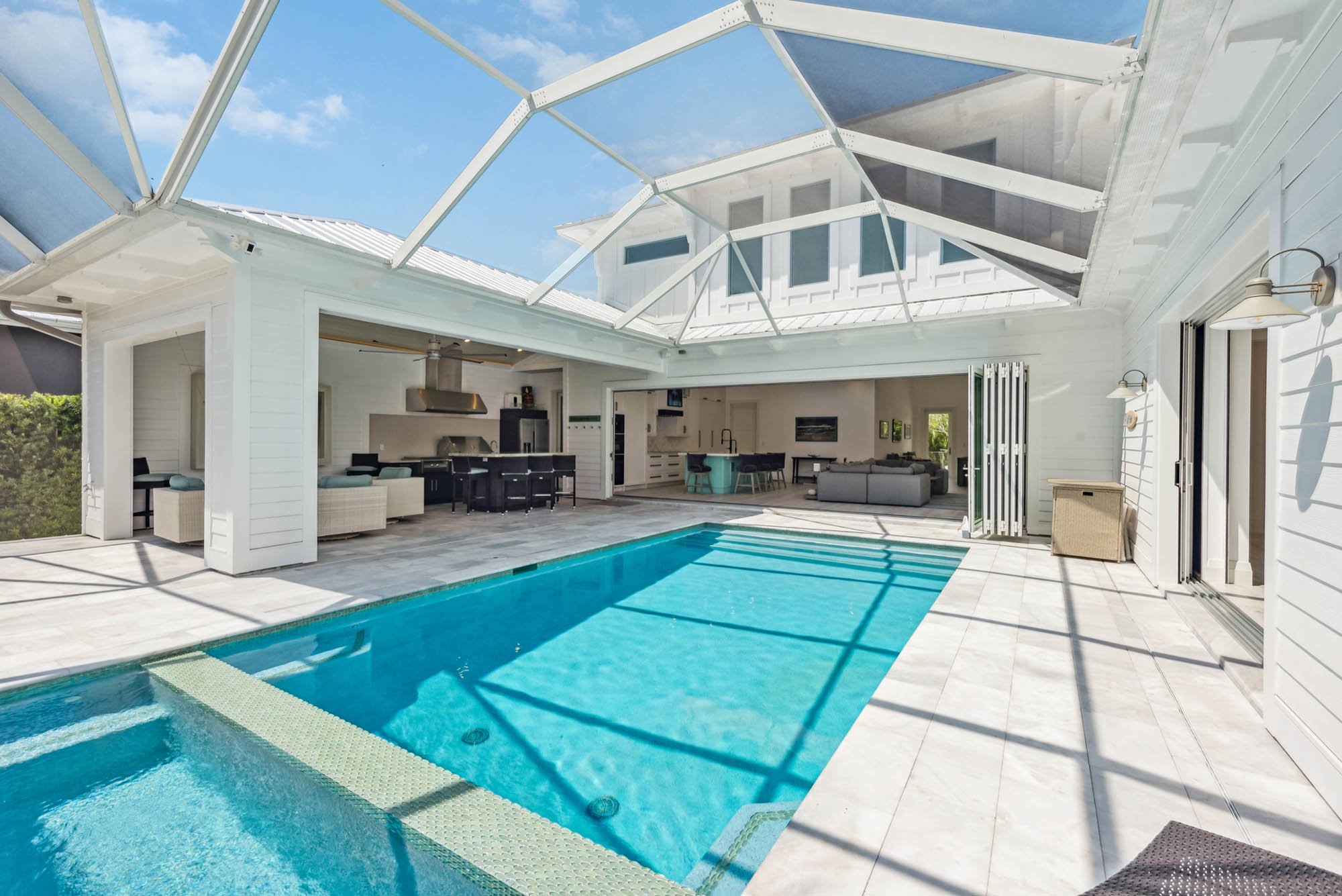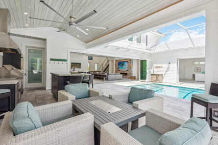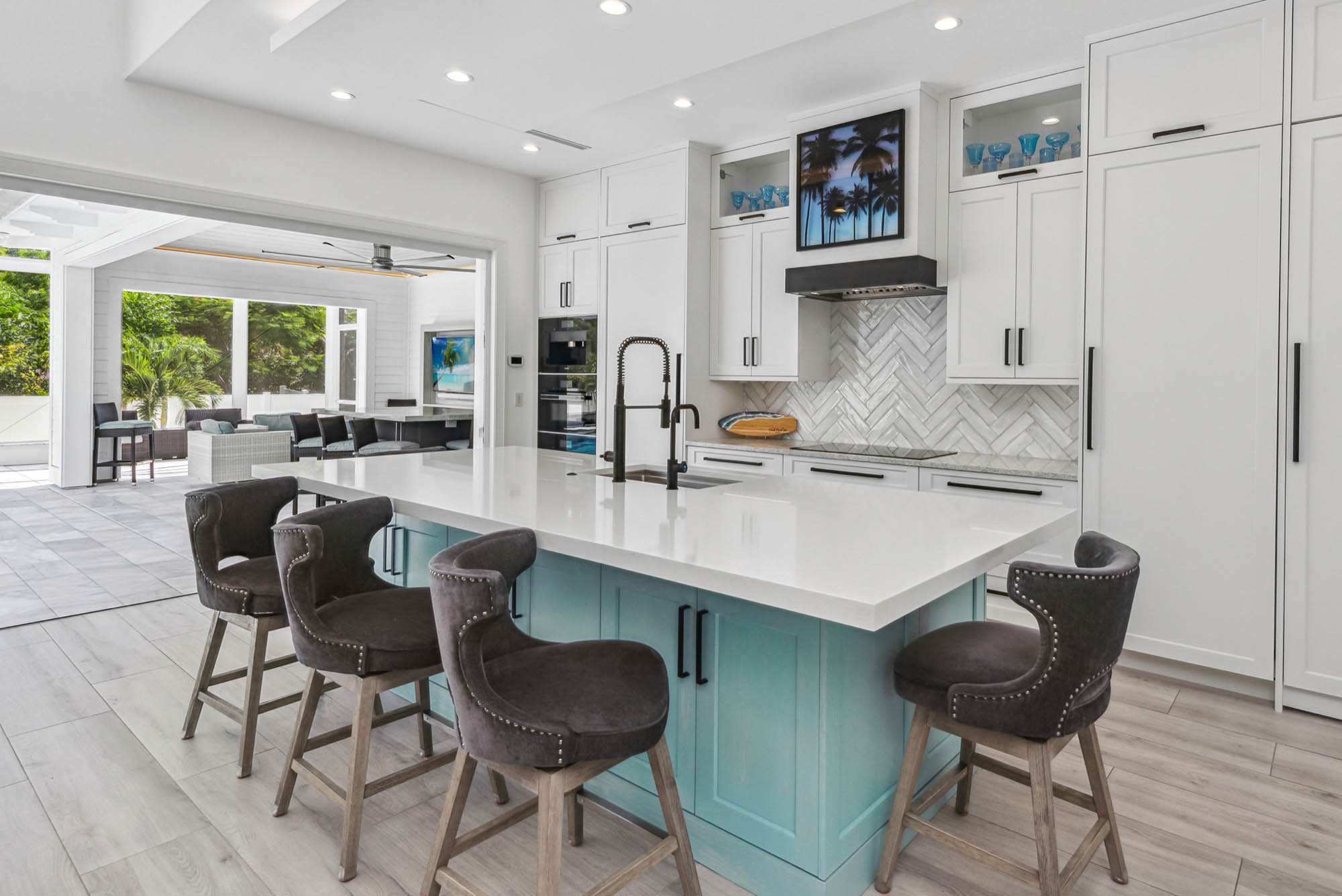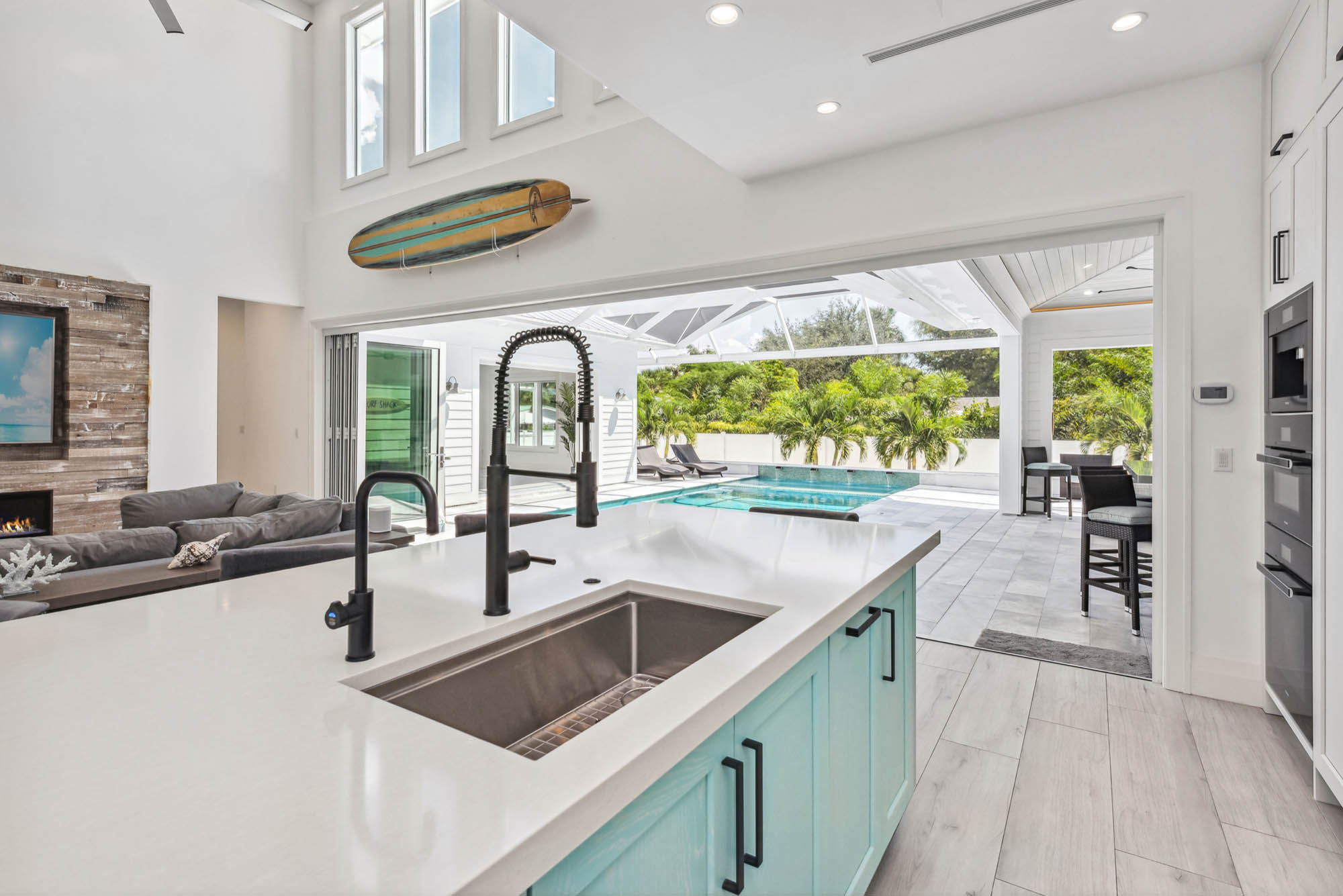 Following the knock-down of an existing home, Sonrise recently completed a new beach/coastal style home in the Lake Park neighborhood of Old Naples. The home’s open design features 5 bedrooms, a full guest suite, den/office, workout room, 3-full baths, 2-half baths, and an outdoor living/kitchen area adjacent to the pool and spa. Making superb use of a limited size city lot, the plan makes extensive use of glass walls that open to the pool and outdoor living area, adding to the homes’ expansive feeling. Use of hidden LED lighting throughout are among the many features that make this home unique.