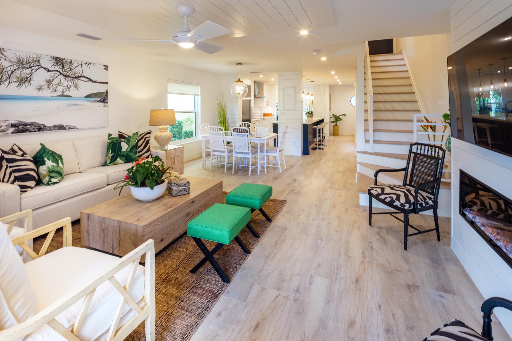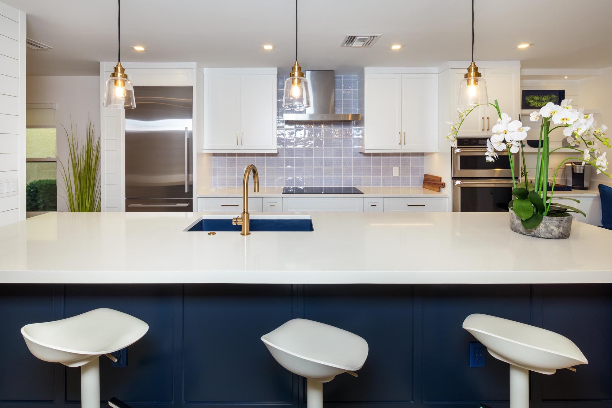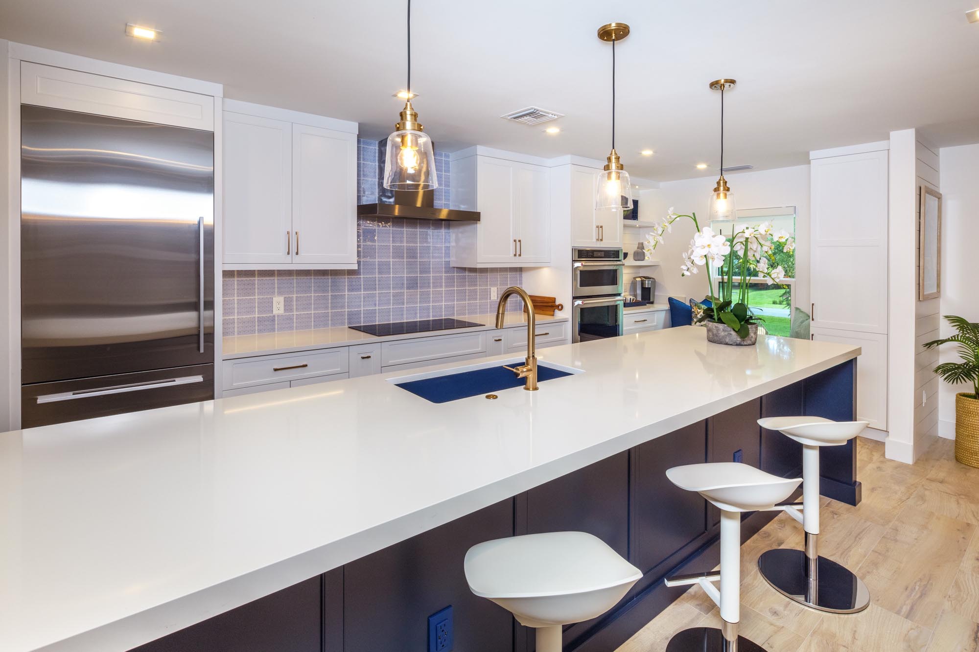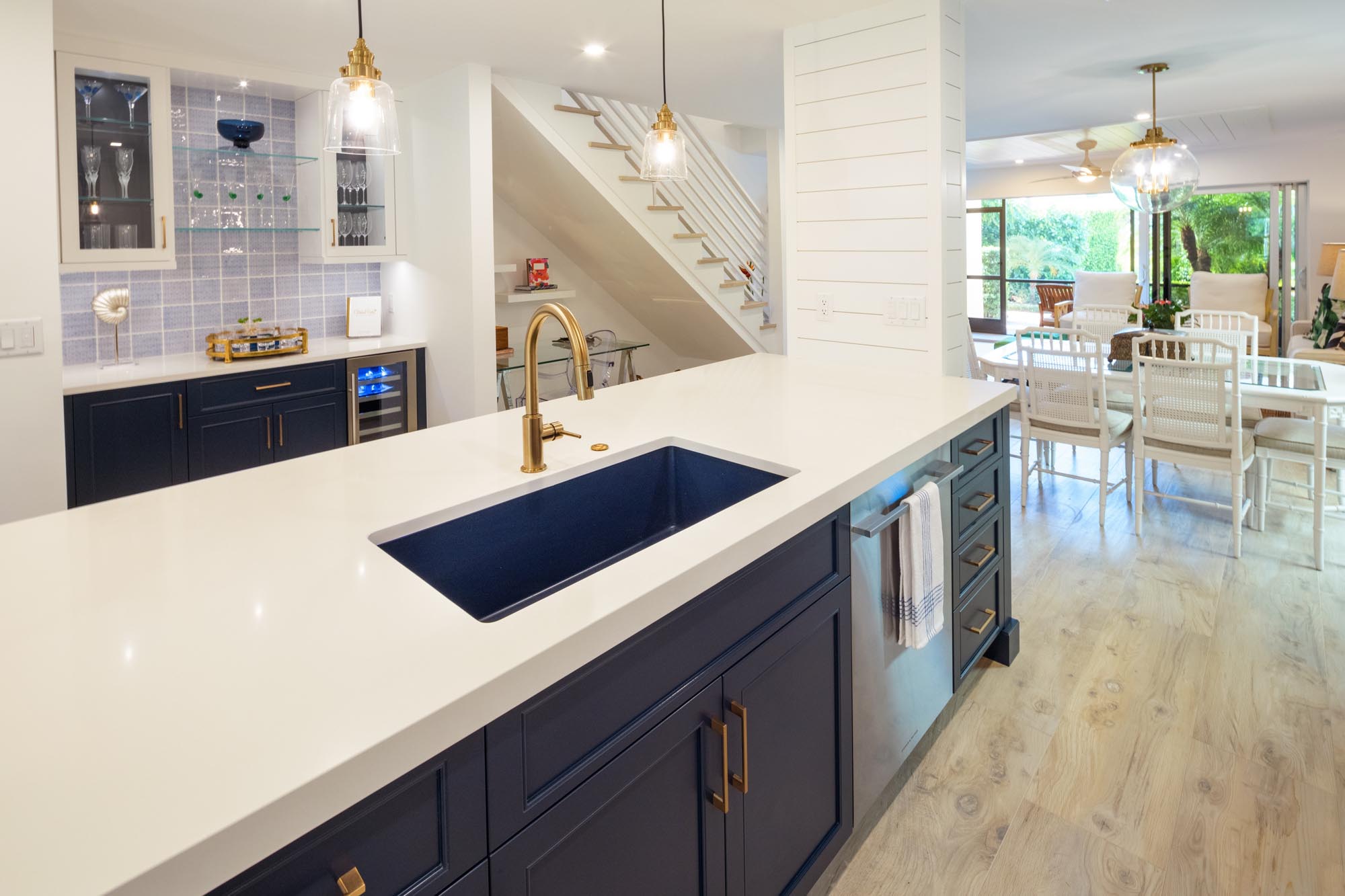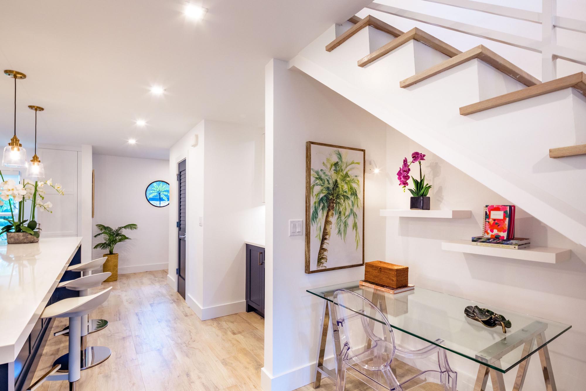 This project involved a condo “real estate flip” in old Naples having a desirable location close to shopping, restaurants, and the beach. Sonrise gutted the interior of this dated two-story, 2-bedroom, 2-bath condo. Every interior element of a dark and aged interior was changed. Although the project required working within a budget, careful planning allowed the use of quality materials in combination with creatively designed features to create an outstanding result. Walking through the front entry now reveals a surprisingly bright, crisp, and modern living space.